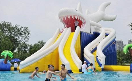 鲨鱼滑梯以小朋友们喜爱的海洋动物鲨鱼为主题,造型栩栩如生,搭配上充气水池使用,营造出了一个栩栩如生的海洋世界,非常讨小孩子喜欢。